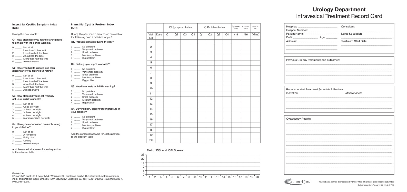 HY105 Intravesical Treatment Record Card CERTIFIED